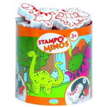 StampoMinos - Dinosaurier, ist ein Stempelset von 10 großen Kreativstempeln, die Stempel sind auf einer Schaumplatte befestigt. Das Stempelkissen ist auch ein Bestandteil der Lieferung. Dank der erhöhten Gummi-Stempelplatte können auch Abdrücke in die Modelliermassen, Backmasse, Teige oder Textil getätigt werden. Diese Stempel sind zertifiziert und geeignet für Kinder ab dem 3. Lebensjahr. | 123stempel.at